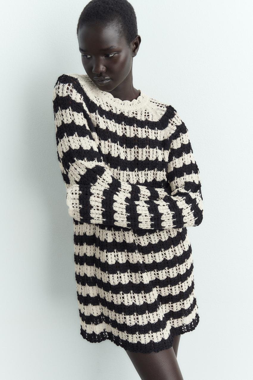 Zara New Woman Striped Pointelle Knit Sweater S M L 3859 115 Ebay
