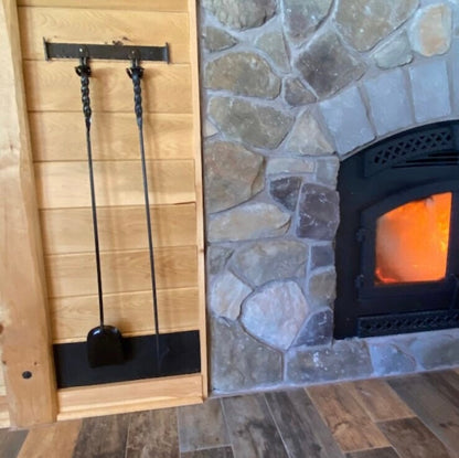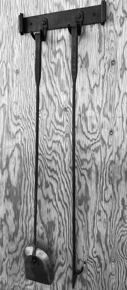 Fireplace Tool Set Shovel Poker Rack Iron Wall Mounted 3 Piece Four Kings Forge